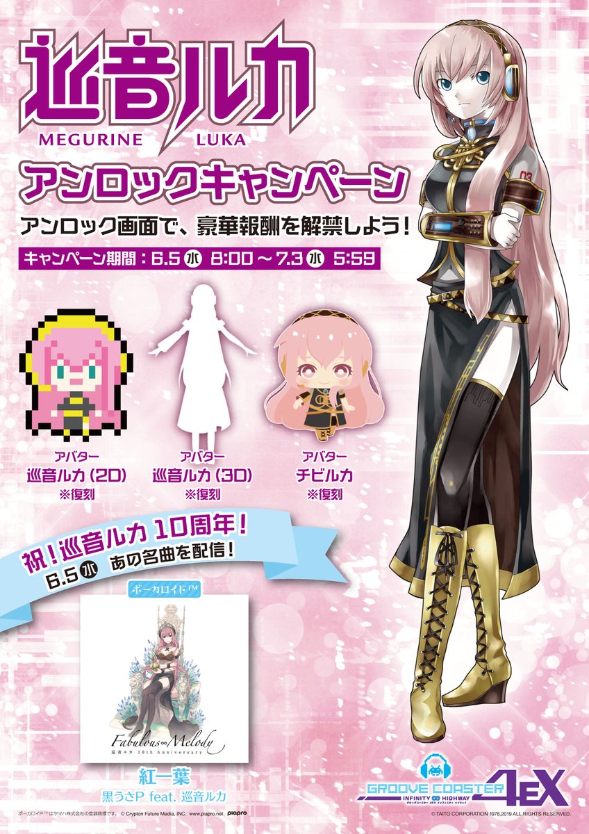 「巡音ルカ アンロックキャンペーン」も同時開催!復刻アバター3種を手に入れよう♪ #グルコス pic.twitter.com/BhBGu7ZvYw