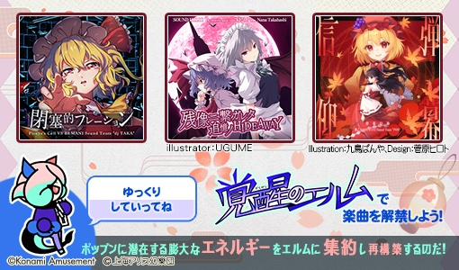 の3曲も東方アレンジ曲が遊べるようになるよ♪