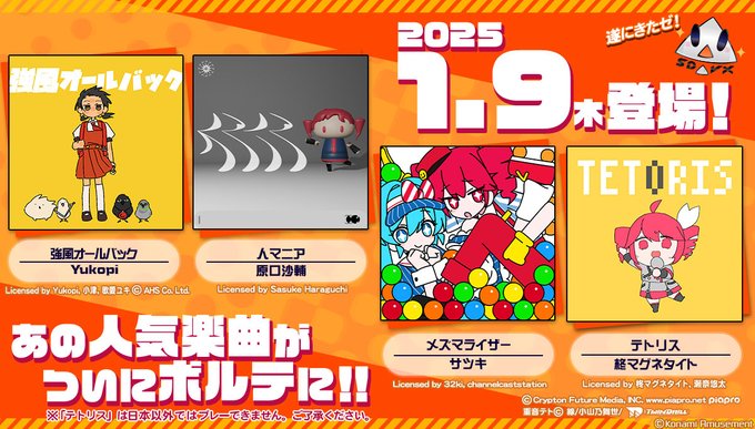 テトリス公開してから2ヶ月たらずで収録か まさかボルテが音ゲー初収録になるとは思わなかったわ |