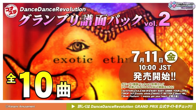 上に貼られるけどコナステ グランプリ譜面パック vol.2 7月11日(金)10:00(JST)より、「グランプリ譜面パック vol.2」が発売! 本譜面パックを購入すると以下の楽曲のCHALLENGE譜面をプレーすることができます。 「321STARS / DJ SIMON」 「AA / D.J.Amuro」 「AM-3P / KTz」 「BABY BABY GIMME YOUR LOVE / DIVAS」 「DROP OUT / NW260」 「exotic ethnic / RevenG」 「MAKE IT BETTER / mitsu-O!」 「Silent Hill / THOMAS HOWARD」 「Silver Platform - I wanna get your heart - / U1 Reincarnates w/ Leah」 「男々道 / Des-ROW・組」 |
