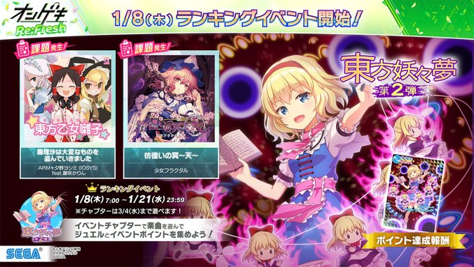 東方曲追加ってマツヨイナイトバグがRe:Fresh稼働時にきて10ヶ月以来か |
