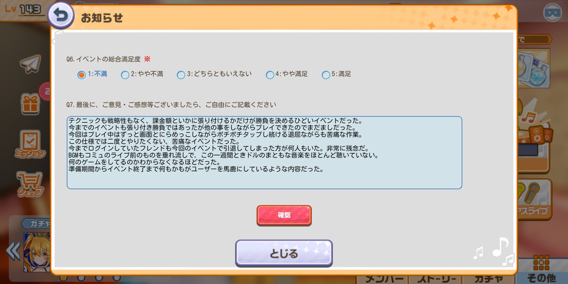 あとアンケートはくっそ辛辣に書いてやった