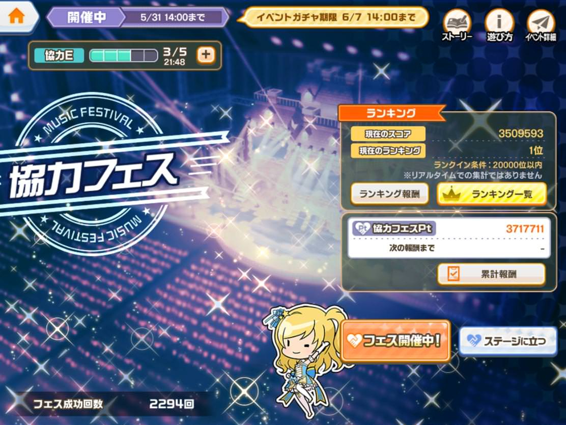 無課金でちょこちょこスタミナ洩らして1300位